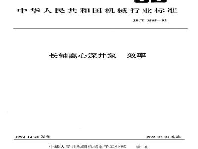 本标准规定了长轴离心深井泵工作部分的效率指标。 本标准适用于流量Q=5~1500m3/h,比转速ns=110~300(或型式数K=0.569~1.55)的泵。 JB/T 3565-1992 长轴离心深井泵 效率 JB/T3565-1992 标准下载解压密码:www.bzxz.net