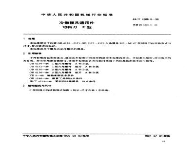 本标准规定了冷镦GB6170~6171,GB6175~~6176六角螺母M8~M14F型切料刀的结构型式与尺寸,技术要求和标记。