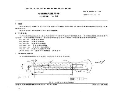 本标准规定了冷镦GB67-69,GB818~820螺钉M2M2.5A型切料模的结构型式与尺寸、技术要求和标记。