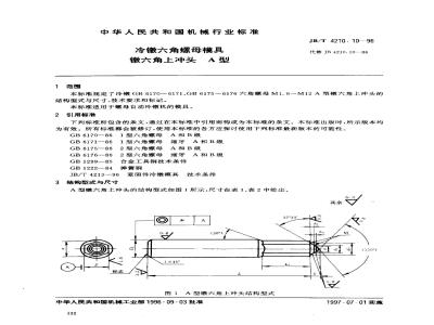 本标准规定了冷GB6170~~~6171、GB6175~6176六角螺母M1.6~~M12A型镦六角上冲头的结构型式与尺寸、技术要求和标记。本标准适用于螺母自动冷镦机的模具。2引用标准