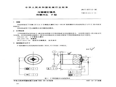 本标准规定了冷镦GB 818十字槽盘头螺钉M2~M10F型终镦冲头的结构型式与尺寸、技术要求和标记。 本标准适用于双击整模自动冷镦机的模具。 JB/T 4211.6-1996 冷镦螺钉模具 终镦冲头 F型 JB/T4211.6-1996 标准下载解压密码:www.bzxz.net