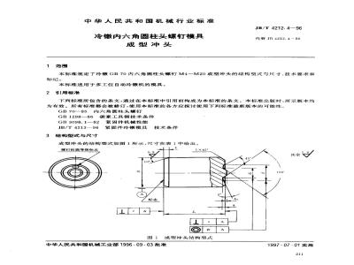 示例:M12GB70内六角圆柱头螺钉、成型冲头的标记为:成型冲头GB70M12JB/T4212.4—96212