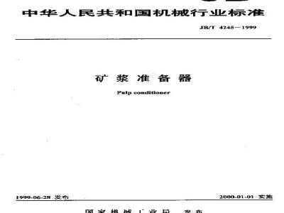 JB/T 4245-1999 本标准是对 JB 4245-86《矿浆准备器》的修订,修订时仅按有关规定作编辑性修改,技术内容没有改变。 本标准规定了矿浆准备器的产品分类,技术要求,试验方法,检验规则,标志、标签、使用说明书,包装、运输和贮存。 本标准适用于矿浆准备器。该机主要用于煤浮选作业前矿浆与浮选药剂的处理,也可用于其它低浓度浆液与液态药剂的混合。 JB/T 4245-1999 矿浆准备器 JB/T4245-1999 标准下载解压密码:www.bzxz.net