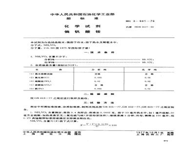 中文名称:化学试剂 偏矾酸铵(原HG/T 3-941-76)
