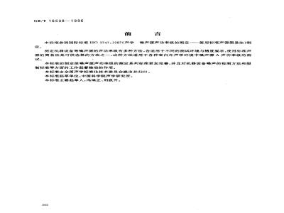 Acoustics--Determination of sound power levels ofnoise sources using sound pressure-Survey methodusing a reference sound sourceGB/T16538—1996
