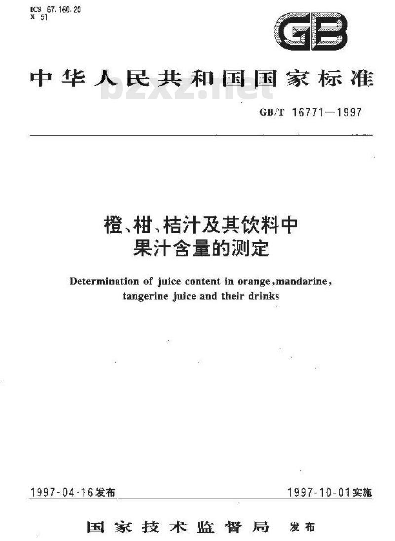 Determination of juice content in orange,mandarinetangerinejuice and their drinks1997-04-16发布