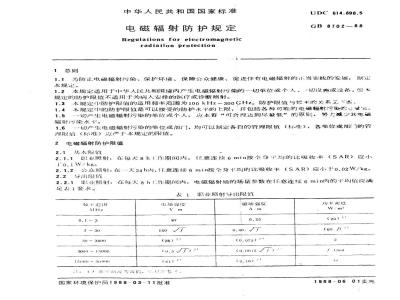 本规定适用于中华人民共和国境内产生电磁辐射污染的一切单位或个人、一切设施或设备。但本规定的防护限值不适用于为病人安排的医疗或诊断照射。 GB 8702-1988 电磁辐射防护规定 GB8702-1988 标准下载解压密码:www.bzxz.net