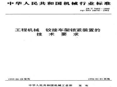 钦接车架锁紧装置(包括附件和工程机被车架上安装位置的所有铰点)在承受二倍于工程机械制造厂技术文件中规定的转向系统产生的最大力时其任何结构均不应出现塑性变形。本试验应在转向系统的左、右两个转向位置上进行。机械工业部1995-06-20批准