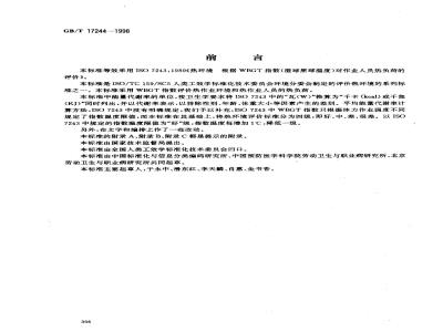 本标准是ISO/TC159/SC5人类工效学标准化技术委员会环境分委会制定的评价热环境的系列标准之一。本标准采用WBGT指数评价热作业环境和热作业人员的热负荷。本标准中能量代谢率的单位,按卫生学要求将ISO7243中的“瓦(W)\换算为\千卡(kcal)或干焦(KJ)”同时列出,并以代谢率表示,以排除性别、年龄、体重大小等因素产生的差别。平均能量代谢率计算方法,ISO7243中没有明确规定,我们予以补充,ISO7243中WBGT指数只根据体力作业强度不同规定了指数温度限值,而本标准在其基础上,将热环境评价标准分为四级,即好、中、差、很差。以ISO7243中规定的指数温度限值为“好”级,指数温度每增加1℃,降低一级。另外,在文字和编排上作了些改动。本标准的附录 A、附录 B、附录 C都是提示的附录。本标准由国家技术监督局提出。本标准由全国人类工效学标准化技术委员会归口。本标准由中国标准化与信息分类编码研究所、中国预防医学科学院劳动卫生与职业病研究所、北京劳动卫生与职业病研究所共同起草。本标准主要起草人:于永中、滑东红、李天麟、肖惠、金书香。396