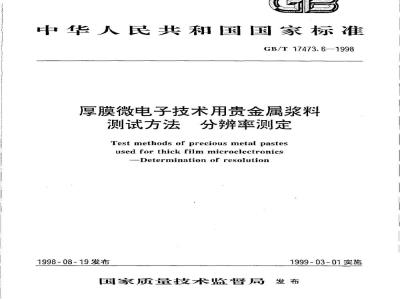 中文名称:厚膜微电子技术用贵金属浆料测试方法 分辨率测定