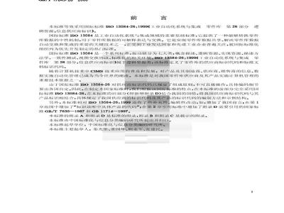 第42部分描述方法学:构造零件族的方法学,第101部分视图交换协议:由参数程序确定的几何视图交换协议;第102部分视图交换协议:由ISO103033一致性规范确定的视图交换协议。在ISO13584-1中描述了本国际标准的结构。本国际标准各部分的编号反映了它的结构:第10部分~第19部分规定了概念描述;第20部分~第29部分规定了逻辑资源;第30部分~第39部分规定了实现资源;第40部分~第49部分规定了描述方法学;第50部分~第59部分规定了一致性测试;第100部分~第199部分规定了视图交换协议;第500部分~第599部分规定了标准化的相关环境。ISO13584今后出版的各个部分也遵从同样的编号方式。附录A是本标准(ISO13584-26)的标准的附录。附录B和附录C是本标准的提示的附录。1