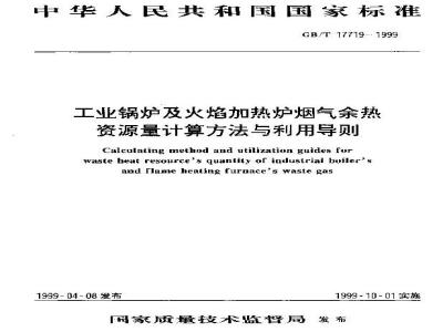 Caleulnting nethod and utilizatinn guides farwaste heal rernnrce's quantity of industrial hoiler\and flanie healing furnace'k wakte RasGB/T17719—1999
