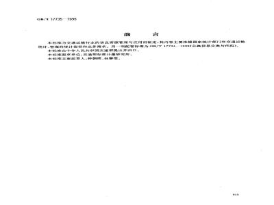 本标准为交通运输行业的信息资源管理与应用而制定,其内容主要依据国家统计部门和交通运输统计、管理的统计指标和业务需求。另一项配套标准为GB/T17734一1999《公路信息分类与代码》。本标由中华人民共和国交通部提出并口。本标准起草单位:交通部标准计量研究所。本标主要起草人:钟朝晖、孙黎莹。613