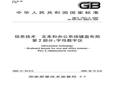 GB/T17971在《信息技术文本和办公系统键盘布局》总标题下,目前包括以下8个部分:第1部分:指导键盘布局的一般原则第2部分:字母数字区