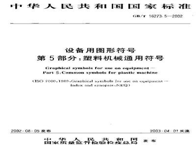 Graphical symhols for use on equipment Part 5:Common symbols for plastic machine(IsO7000:1989.Graphical symbols Ioruse on uuipment .-Indexandsynopsis.NEQ: