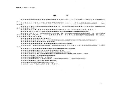 本标准修正了原标准基本参数字距优先选用值和打印文本内容。本标准将原标准中表1、表2合并为本标准的表1。本标准调整充实了原标准中标志、包装、运输、贮存的内容。本标准自实施之日起,同时代替原轻工业部发布的专业标准ZBY54001-1989。本标准由中国轻工总会质量标准部提出。本标准由全国制笔标准化中心归口。本标准主要起草单位:上海打字机厂、上海英雄打字机厂、上海长空打字机厂。本标准主要起草人:吴文谊、奚炯、杨月亭。本标准解释权归全国制笔标准化中心。本标准于1989年发布,1997年第-一次修订。251