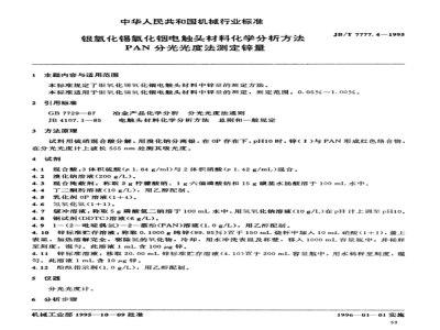 电触头材料化学分析方法总则和般规定试料用硫硝混合酸分解,用漠化钠分离银,在OP存在下,pH10时,锌(1)与PAN形成红色络合物,在分光光度计上波长555nm处测其吸光度。4试剂