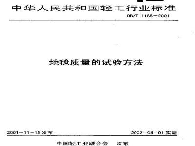 本标准规定了地毯的单位面积总质量、单位面积绒头总质量和毯基上单位面积绒头质量的试验方法,以及地毯的毯面绒头密度和绒头纤维体积比的测算方法。 QB/T 1188-2001 地毯质量的试验方法 QB/T1188-2001 标准下载解压密码:www.bzxz.net