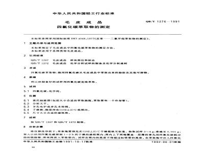 本标准规定了毛皮成品中四氯化碳萃取物的测定方法。本标准适用于各种类型毛皮成品。2引用标准
