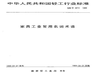 本标催是原国家标准G日3330-1982《家具工业带用名词术语3,经出国轻行[1999】112号文发布转化标准号为QB/T39141999,内容同前,本标准虫避家轻工业局提出: