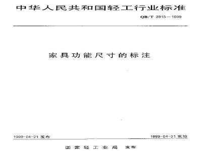 本标准提原国家标准GB10166一1988家具功能尺寸的标注,经由国轻行[19]112号文发布转化标准号为Q/T3915—1999,内容尚前。本标准也回求经工业局类出。