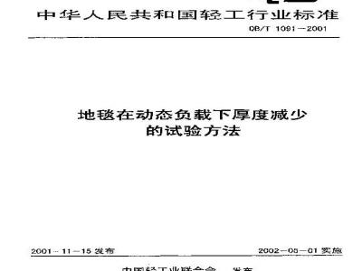 本标准规定了地毯在承受动态负载下厚度减少的试验方法.本标准适用于相同厚度和结构的各种类型的地毯。本标准不适用于其它含有一种以上的厚度或结构的地毯,除非其不同厚度或结构的各个区域可以分别试验。 QB/T 1091-2001 地毯在动态载下厚度减少的试验方法 QB/T1091-2001 标准下载解压密码:www.bzxz.net
