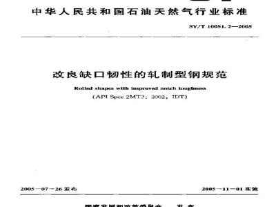 本核准等同采用APISpec2MT2:2002《改良缺口瓶性的乳制型钢(英文版)。本标准与SY/T10051.1—2004《游上结构用改划性的饿锰钢极规范2(APISpe2MT1:2101:1LT)属十同—系列的标准,所以在编与时尽可能采用与SY/T10051.1一2004相同的名划术语:在使用涉及APIPEc2MT2:2012的所在国政府或其当局的然令、法规和想定时,一律按中华人民共利国政府或政府士管部门颁布的相应法今、法舰和规定执行:A1ISpec:2MT2;2003中的数或定盘计算方法:A切合我国实际的均可使用:否应根据伐国的兵休伤沉,使用我国的数据和定益计算方法。计尽单位以裁函达定计盘单位为主,即我国法定计盘单位值在前,英制单位的相应值标在其后的括号内。为不改变AP1Spue2MT2:20U2中公式,曲线的形状特征、常数和系数,原使用英制单位的,仍沿用英谢单位。