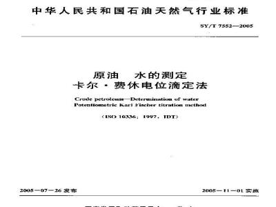 日水的测定卡尔·费休电位滴定法》(英文版)。本标准等同采用IS)10336:1997原油本标准数同需译IS010736,1997为丁使用,本标泄缺了下列编辑性接改:;)“该国际标确”画攻为“本标”;b)雨小数点“:代萨作为小敏点恂互号“”;)谢除国际标的前言,