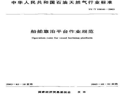 SY/T 10046-2003 船舶靠泊平台作业规范 SY/T10046-2003 标准下载解压密码:www.bzxz.net