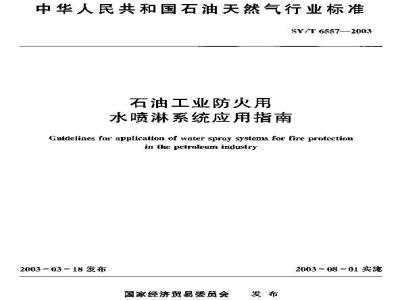 本标准旨在为石油工业防火用水喷淋系统的设计提供指南。使用本标准有助于确定安装水喷淋系统的位置和使用流量。 SY/T 6557-2003 石油工业防火用水喷淋系统应用指南 SY/T6557-2003 标准下载解压密码:www.bzxz.net