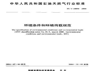 本规范提供对重要环境条件描述以及环境荷载确定的指导。 SY/T 10050-2004 环境条件和环境荷载规范 SY/T10050-2004 标准下载解压密码:www.bzxz.net