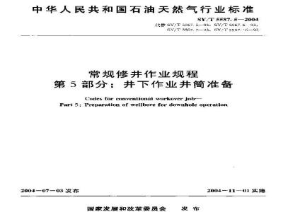 中文名称:常规修井作业规程 第5部分:井下作业井筒准备