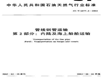 Transportation nt the linc pipcPart2: Transpnrtation on barges and vessels2003 - 03 - 18 发布