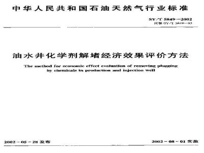 SY/T 5849-2002 油水井化学剂解堵经济效果评价方法 SY/T5849-2002 标准下载解压密码:www.bzxz.net