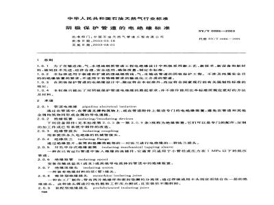 1.0.1为了在输送油、气、水埋地钢质管道工程电绝缘设计中积极采用新工艺、新技术、新设备和新材料,做到技术先进、经济合理、安全适用、确保质量,制定本标准。1.0.2本标准适用于新建和扩建的埋地钢质油、气、水输送管道的阴极保护工程。不涉及纯属安全目的的绝缘装置的要求,不适用于有特殊要求的输送化工介质的管道。1.0.3在阴极保护管道的电绝缘设计中,除应符合本标准外,尚应符合国家现行的有关强制性标准的规定。