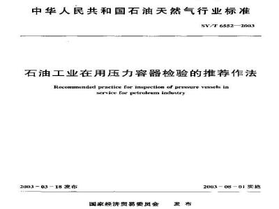 SY/T 6552-2003 石油工业在用压力容器检验的推荐作法 SY/T6552-2003 标准下载解压密码:www.bzxz.net