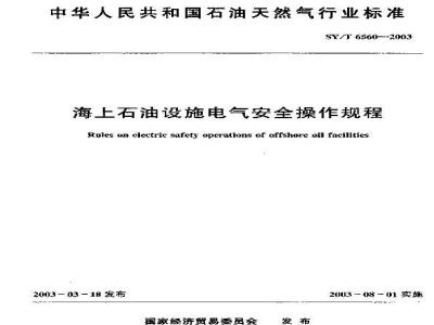 海上石油设施电气安全操作规程Rules on electric safety operations of offshore oit faeilities2003-03-1B发布