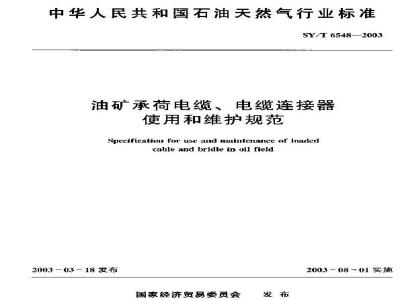 SY/T 6548-2003 油矿承荷电缆、电缆连接器使用和维护规范 SY/T6548-2003 标准下载解压密码:www.bzxz.net