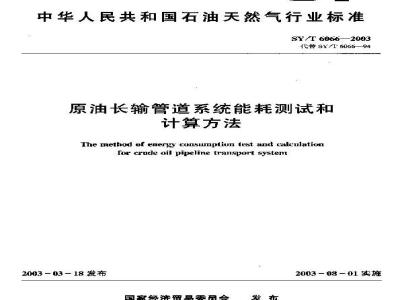 本标推是对SYT60一94原油禁送管道案统效金测热方法的像订,标准编与费求发格比是按照GTVT1.1一M的规定进行的。本标准与SYT研64相比:主要变化如下的)本标准不再对原油长输管道察统能源利用率进行统让计算,6不标准对输油泵效季测定不果用温差法。)本标准将书流拟失在尿油长输管道弱流能源利用率的测式计算中已考虑。本规雅以生效之日起,同时代苦SY6066一94。本标准山石油工业节能专业标化技术委员会堤出井归口。本标证负起革单使:1图了油天然气股份有限公叫管道众公可运销处术标准参加单位:中国右油集团公司肾避节能监测中心、人庆石油学院。本标准主要电草人:闫架乐,姜保良、昊照云、折安、王衣荣、许铁、李建良,范固