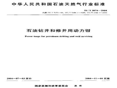 本标准规定了石油钻井和修井用动力钳的分类、要求、试验方法、检验规则、标志、包装和贮存。本标准适用于石油钻井和修井用动力钳(钻杆钳、套管钳和修井钳)的设计、制造和检验。 SY/T 5074-2004 石油钻井和修井用动力钳 SY/T5074-2004 标准下载解压密码:www.bzxz.net
