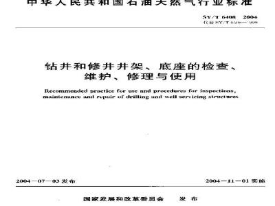 SY/T 6408-2004 钻井和修井井架、底座的检查、维护、修理与使用 SY/T6408-2004 标准下载解压密码:www.bzxz.net