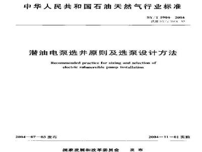 本标准规定了潜油电泵选并原则及选泵设计方法的资料准备、气体计算、油井产能预测,潜油电泵机组的选择。本标准适用于溶解气驱和水驱油藏油井设计选择潜油电泵的方法。 SY/T 5904-2004 潜油电泵选井原则及选泵设计方法 SY/T5904-2004 标准下载解压密码:www.bzxz.net