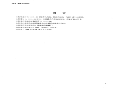 本标准是对NJ332一84《锯齿轧花机、锯齿剥绒机毛刷》进行的修订。本标准与NJ332一84相比,主要技术内容的改变为:调整了基本尺寸。本标准自实施之日起代替NJ332—84。本标准由全国农业机械标准化技术委员会提出并归口。本标准负责起草单位:邯郸棉花机械厂。本标准主要起草人:高莉、杨国庆、李付堂。本标准于1984年10月28日首次发布。9