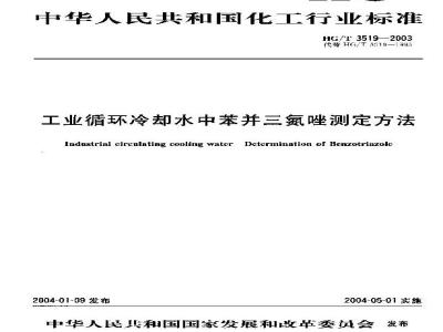 本标准规定了工业循环冷却水中苯并三氮哇的测定,测定范围为0.4 mg/L-10 mg/L.本标准适用于磷系循环冷却水和磷系复合抑制剂中苯并三氮哇的测定。 HG/T 3519-2003 工业循环冷却水中苯骈三氮唑测定方法 HG/T3519-2003 标准下载解压密码:www.bzxz.net