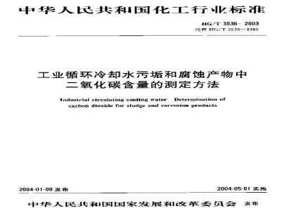 中文名称:工业循环冷却水污垢和腐蚀产物中二氧化碳含量的测定方法