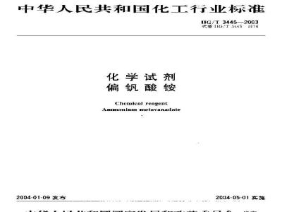 本标准规定了化学试剂偏钒酸铵的规格、试验方法、检验规则和包装及标志。 HG/T 3445-2003 化学试剂 偏钒酸铵 HG/T3445-2003 标准下载解压密码:www.bzxz.net