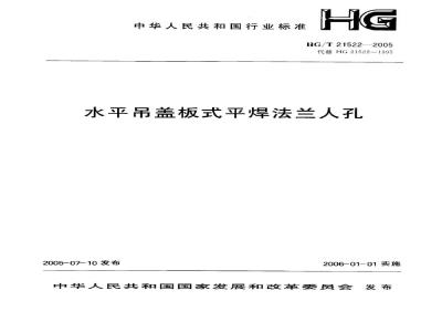 HG/T 21522-2005 水平吊盖板式平焊法兰人孔 HG/T21522-2005 标准下载解压密码:www.bzxz.net