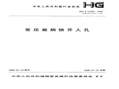 HG/T 21525-2005 常压旋柄快开人孔 HG/T21525-2005 标准下载解压密码:www.bzxz.net