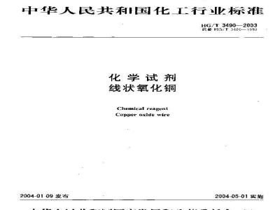 本标准规定了化学试剂线状氧化铜的规格、试验方法、检验规则和包装及标志。 HG/T 3490-2003 化学试剂 线状氧化铜 HG/T3490-2003 标准下载解压密码:www.bzxz.net