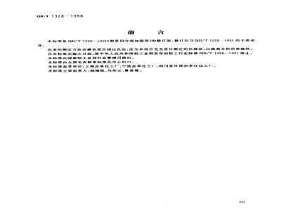 色度的测定方法由碘色度目视比色法,改为采用分光光度计测定的仪器法,以提高分析的准确性。自本标准实施之日起,原中华人民共和国轻工业部发布的轻工行业标准QB/T1328—1991废止。本标准由国家轻工业局行业管理司提出。本标准由全国毛皮制革标准化中心归口。本标准起草单位:上海皮革化工厂、宁波皮革化工厂、四川省什市亭江化工厂。本标准主要起草人:钱福根、马兆云、鲁显菊。295